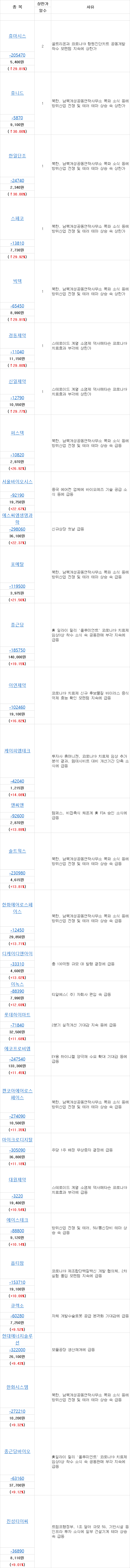 코로나쪽 주식을 살펴본 후에