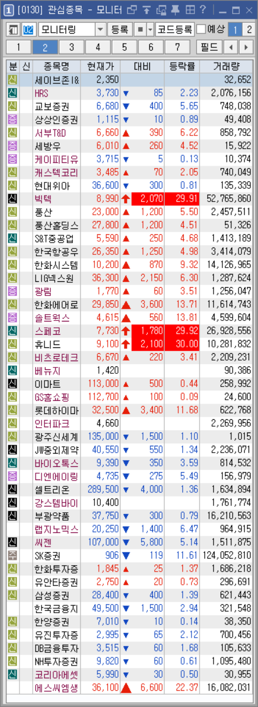 모니터링 종목은 초반 상승률이 높지만 갭상승으로 인한 것이라 먹을자리가 없다.