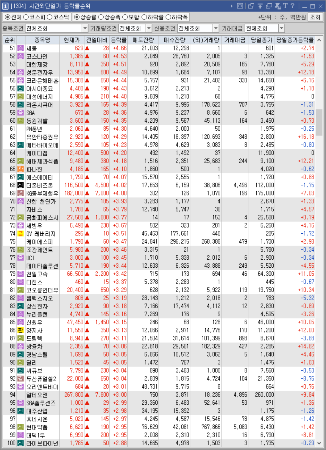 시간외 등락률 상위