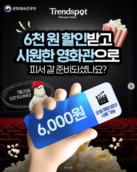 바로바로 👉 문화체육관광부에서 지원하는 영화 할인 혜택!