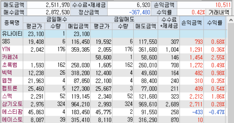 미디어 법안 발의 이슈로 imbc 상, sbs, ytn에서 상승 나올때 조금 먹음.