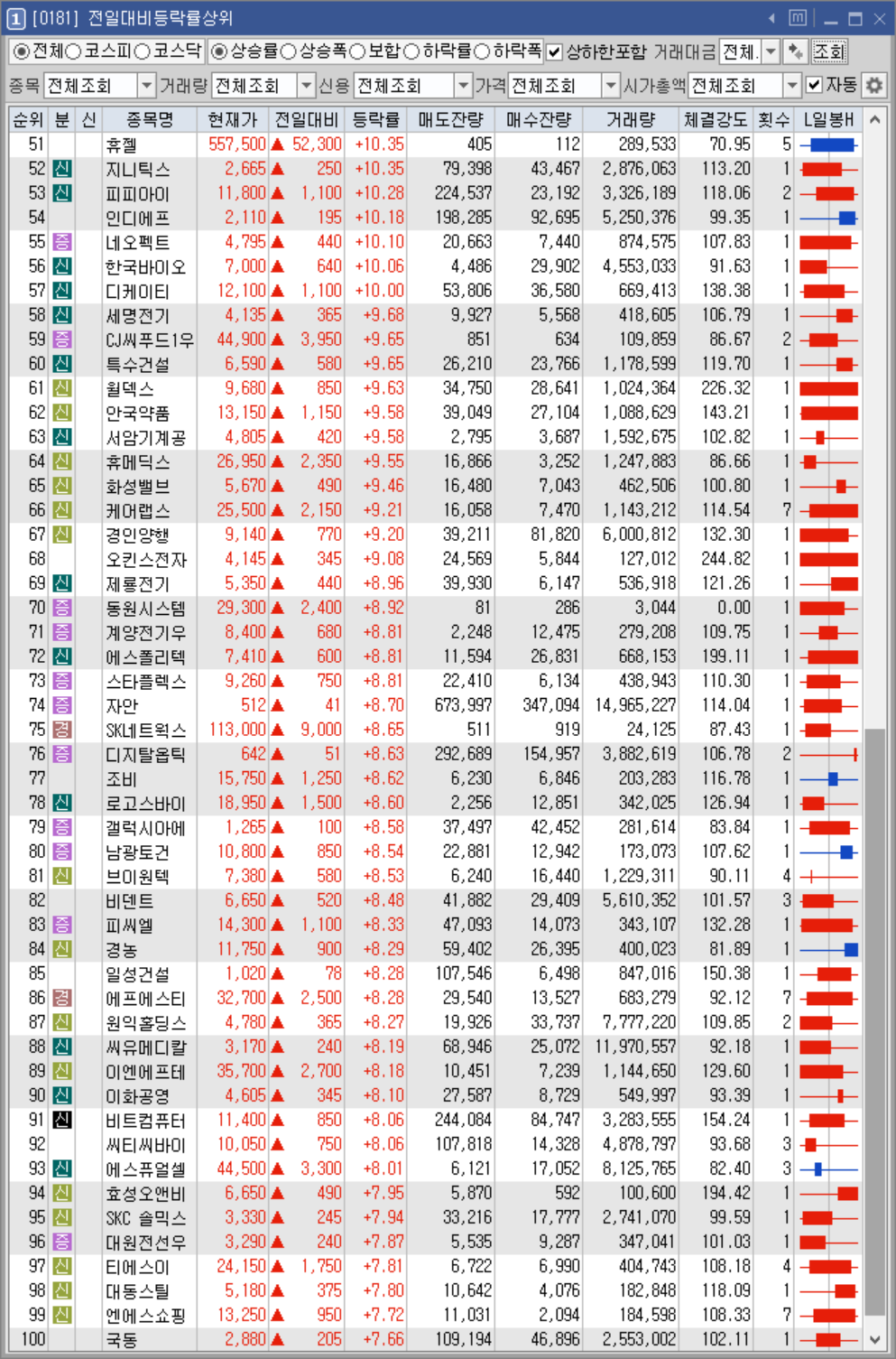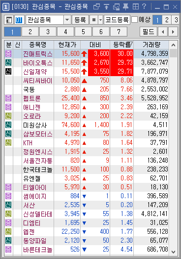 오늘은 남북경협, 바이오, 반일 테마가 잘 갔다.