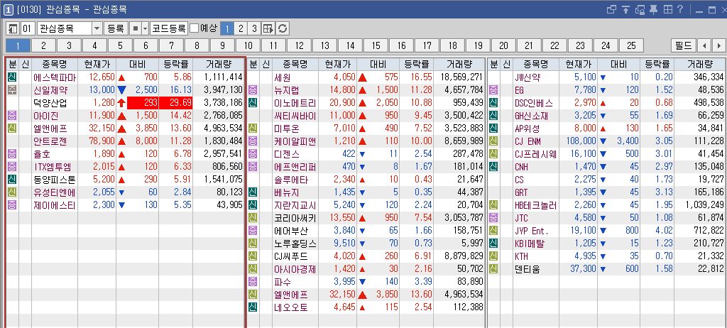 장이 나쁜데도 불구하고 전날 시간외 위주의 관종에 있던 10종목이 모두 급등을 했었다.