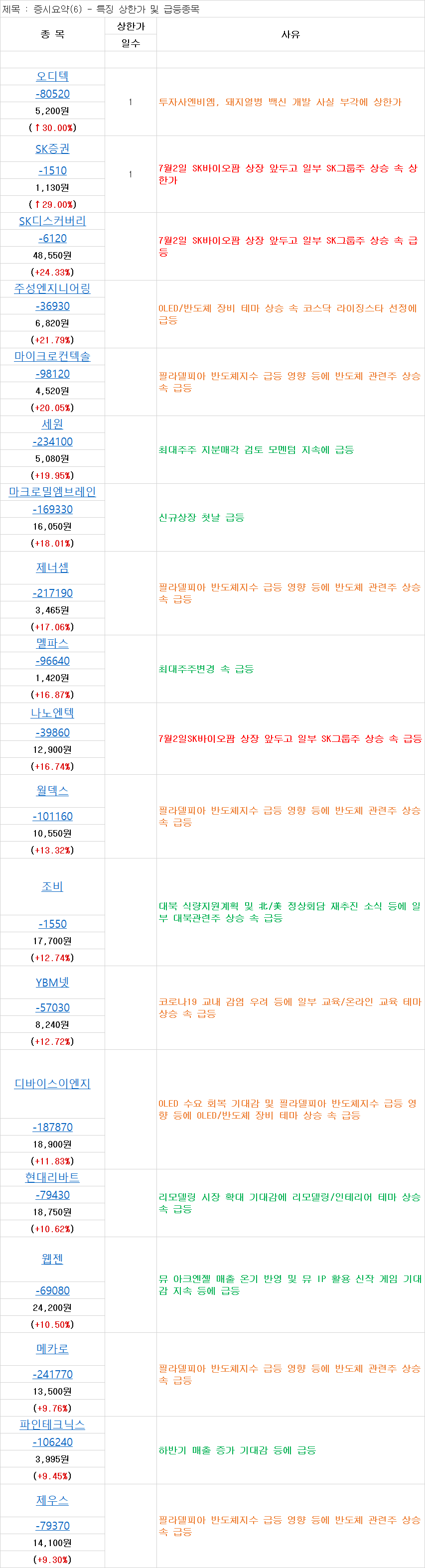 제목 : 증시요약(3) - 특징 테마