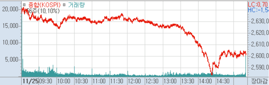 * 코디엠(224060) - 현저한 시황변동에 대한 조회공시 요구 답변으로 중요정보가 없다고 밝혔으며, 11월24일 이낙연 관련주 기사 관련 해명으로 아무런 연관성이 없다고 밝힘