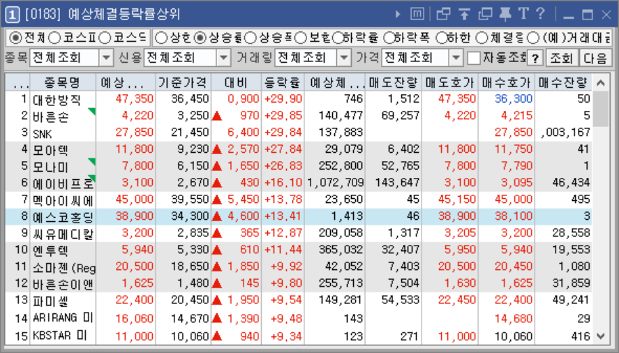 예상체결량은 코로나, 의료기기, 도시가스, 겨울 테마 등