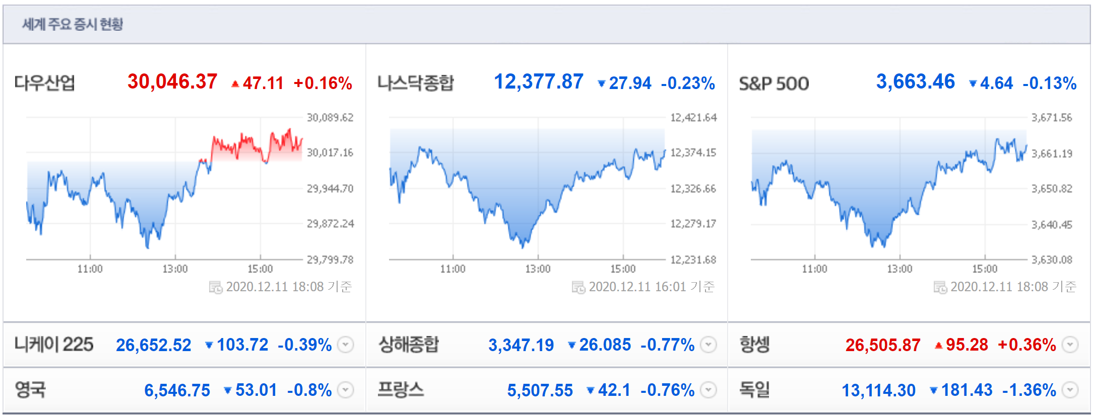 12/11(현지시간) 뉴욕증시가 코로나19 백신 기대감에도 美 경기 부양책 협상 난항 및 브렉시트 불확실성 등에 혼조 마감한 가운데, 주요 테마들은 하락 테마가 우세. 특히, 테슬라(-2.72%)는 오는 21일 S&P500지수 편입을 앞두고 일부 기관이 투자의견을 하향 조정했다는 소식에 하락하는 등 전기차 테마가 하락했고, 인텔(-1.05%), 마이크론 테크놀로지(-1.05%) 등 반도체, 애플(-0.67%) 등 모바일, 씨티그룹(-2.60%) 등 은행, AIG(-1.52%) 등 보험, 마스타카드(-1.24%) 등 카드, GM(-2.22%) 등 자동차, 엑슨모빌(-0.48%) 등 정유 테마 등이 하락. 아울러 화이자(-1.46%)가 코로나19 백신 기대감 지속에도 하락하는 등 제약/헬스케어 테마도 부진한 모습.