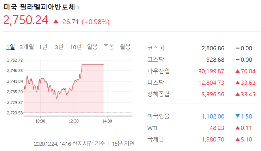 한편, 12/25(현지시간) 뉴욕증시는 성탄절(Christmas Day)로 휴장.