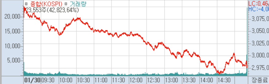 | 증권 | 코스피지수 3,000선 붕괴 속 하락 |