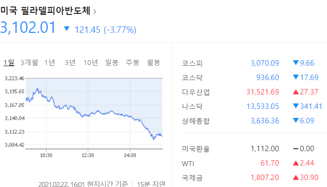 | 반도체 관련주 | 필라델피아 반도체지수 급락 속 하락 |