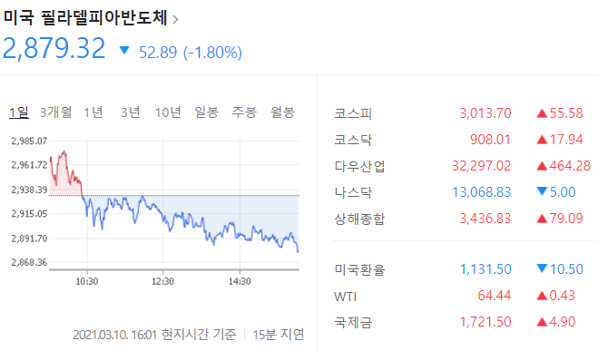 3/10(현지시간) 뉴욕증시가 경기부양책 통과 및 물가 지표 안정에도 기술주 부진 등에 혼조 마감한 가운데, 주요 테마들은 상승 테마가 우세. 특히, 국제유가 상승 속 엑슨모빌(+3.07%), 셰브런(+1.71%) 등 정유와 다우케미칼(+2.94%), 듀폰(+1.39%) 등 석유화학 테마가 상승했고, 골드만삭스(+3.46%), 씨티그룹(+3.89%) 등 은행 테마가 강세를 기록. 이 외 경제 재개 기대감 속 마텔(+5.74%), 나이키(+1.21%) 등 소비재, 델타항공(+0.38%) 등 항공, 익스피디아(+1.09%) 등 여행, 윈 리조트(+0.63%) 등 카지노, 페덱스(+0.97%) 등 물류, 보잉(+6.39%) 등 산업재, GM(+3.99%) 등 자동차, 누코(+2.43%) 등 철강 등의 테마가 상승. 금 가격 상승 속 뉴몬트 마이닝(+1.62%) 등 금(金) 테마도 상승.