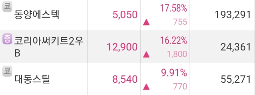 | 동양에스텍 (060380) 5,580원 (↑29.92%) |