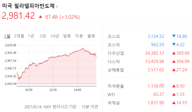 5/14(현지시간) 뉴욕증시가 인플레이션 우려 완화, 반발 매수세 유입, 경제 정상화 기대감 지속 등에 상승한 가운데, 주요 테마들도 대부분 상승. 특히, 인플레이션 우려 완화속 美 금리 하락 등에 애플(+1.98%) 등 모바일, 마이크로소프트(+2.11%) 등 컴퓨터, 아마존(+1.94%), 페이스북(+3.50%), 알파벳A(+2.21%) 등 인터넷, 넷플릭스(+1.38%) 등 미디어 등 주요 기술주 관련 테마들이 강세를 나타냈고, 마이크론 테크놀로지(+3.25%), 인텔(+2.48%), 램리서치(+3.12%) 등 반도체 테마도 강세. 경제 정상화 기대감 속 델타 항공(+5.32%), 사우스웨스트 항공(+3.95%) 등 항공, 익스피디아(+2.43%) 등 여행, 윈 리조트(+3.47%) 등 카지노, 로얄 캐리비안 크루즈(+7.41%) 등 크루즈 등 여행/항공 관련 테마도 큰 폭 상승.