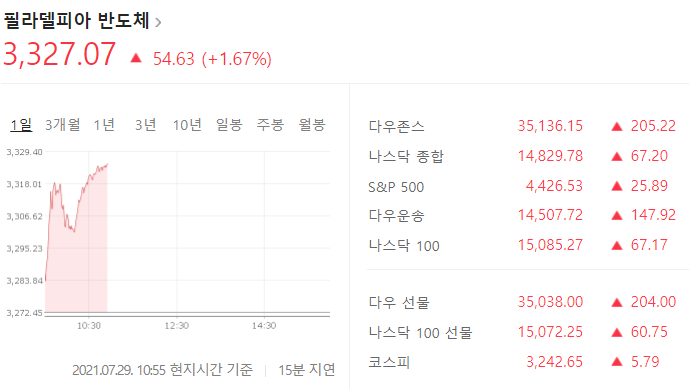 7/28(현지시간) 뉴욕증시가 FOMC회의 결과 발표 속 혼조 마감한 가운데, 주요 테마들은 상승이 우세. 특히, 알파벳A(+3.18%), 화이자(+3.21%), 보잉(+4.18%) 등이 호실적 발표 등에 상승하는 등 인터넷, 제약/바이오, 산업재 테마가 상승했고, AMD(+7.58%), 엔비디아(+1.54%) 등 반도체 테마도 강세. 아울러 알리바바(+5.34%), 쿠팡(+2.26%) 등 전자상거래, 로블록스(+3.86%) 등 게임, 사우스웨스트 항공(+1.19%) 등 항공, 라스베가스 샌즈(+2.04%) 등 카지노, GM(+0.89%) 등 자동차, 니콜라(+7.26%) 등 수소차, 퓨얼셀 에너지(+3.31%) 등 연료전지, 버진 갤럭틱(+3.11%) 등 우주, US스틸(+2.98%)등 철강, 발레(+3.47%) 등 광산 테마 등이 상승.