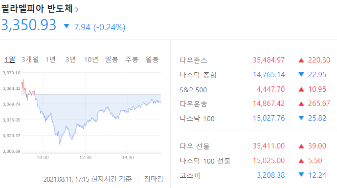 반면, 아마존(-0.86%), 알파벳A(-0.39%), 페이스북(-0.32%) 등 인터넷, 니콜라(-3.85%) 등 수소차, 퓨얼셀 에너지(-9.04%) 등연료전지, 버진 갤럭틱(-12.67%) 등 우주 등의 테마가 하락했고, 모더나(-15.64%), 화이자(-3.90%) 등 제약/바이오, 마이크론 테크놀로지(-1.16%), 엔비디아(-1.19%) 등 반도체 테마도 상대적으로 부진한 모습.