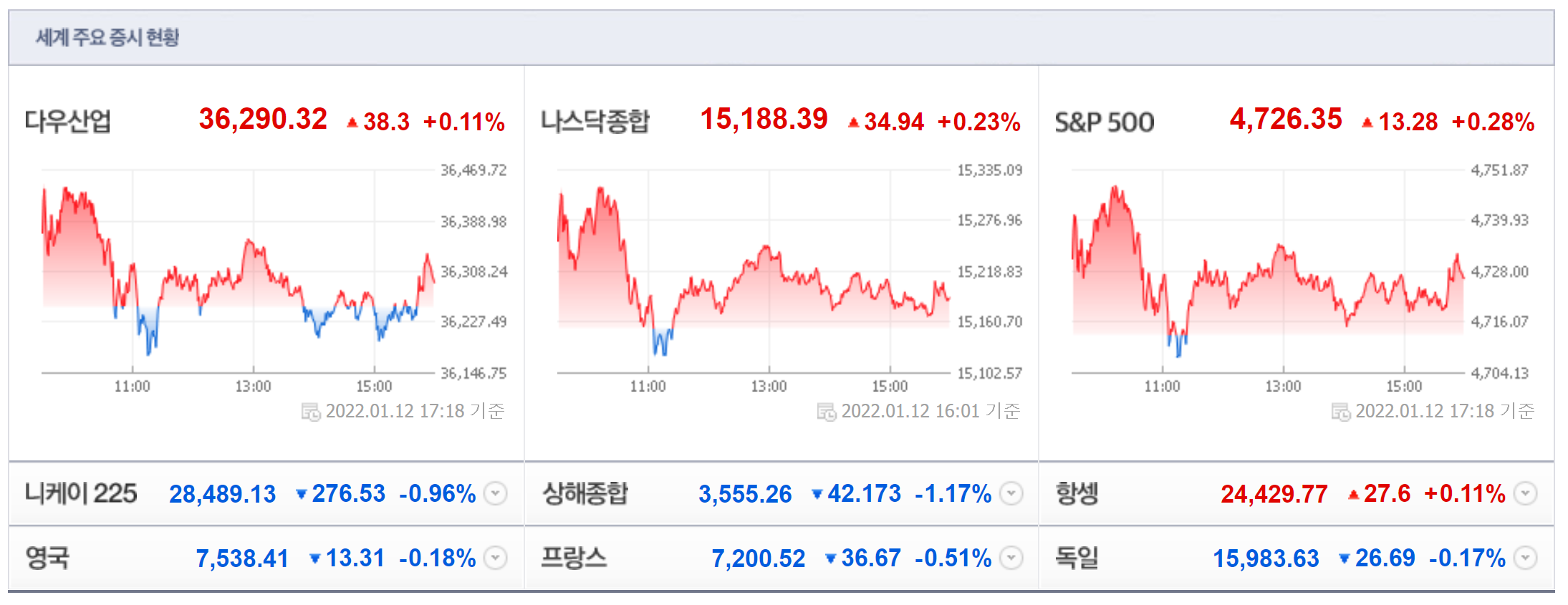 1/12(현지시간) 뉴욕증시가 소비자물가지수 급등에도 예상치 부합 안도감 등에 상승한 가운데, 주요 테마들은 등락이 엇갈림. 국채금리 하락 속 애플(+0.26%) 등 모바일, 엔비디아(+0.65%) 등 반도체, 테슬라(+3.93%) 등 전기차 등 주요 기술주 관련 테마가 대체로 상승했고, 국제유가 상승세 지속 속 린데(+1.44%) 등 석유화학 테마도 상승. 금 가격 상승 속 뉴몬트 마이닝(+1.00%) 등 금(金) 테마도 상승했고, 이 외 US스틸(+5.37%) 등 철강, 발레(+2.03%)등 광산, 캐터필러(+1.11%) 등 산업재 등의 테마가 상승.