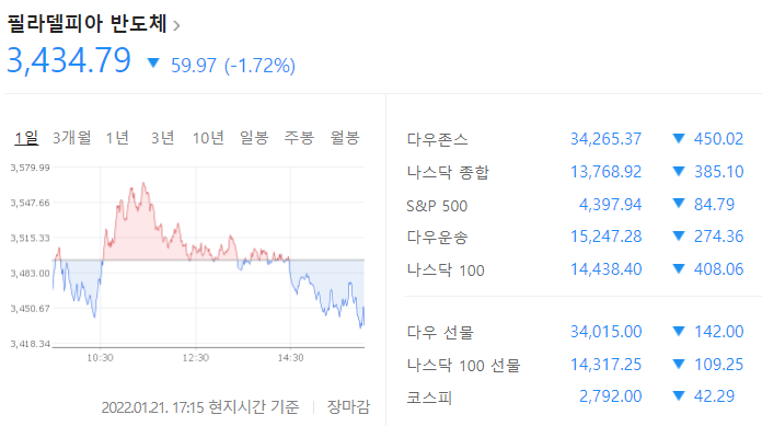 이 외 쿠팡(-9.45%), 알리바바(-5.95%) 등 전자상거래, 페이팔(-5.62%) 등 전자결제, 로블록스(-8.57%) 등 게임, AT&T(-1.52%) 등 통신, 화이자(-2.33%) 등 제약/바이오, 웰스 파고(-2.42%) 등 은행, 비자(-3.93%) 등 카드, 메트라이프(-1.28%) 등 보험, 델타 항공(-2.52%) 등 항공, 포드(-4.62%) 등 자동차, 니콜라(-8.64%) 등 수소차, 퓨얼셀 에너지(-5.57%) 등 연료전지, 솔라엣지(-4.76%) 등 신재생에너지, 엑슨 모빌(-1.50%) 등 정유, 다우케미칼(-1.89%) 등 석유화학, 보잉(-4.09%) 등 산업재, US스틸(-9.62%) 등 철강 등의 테마가 하락.
